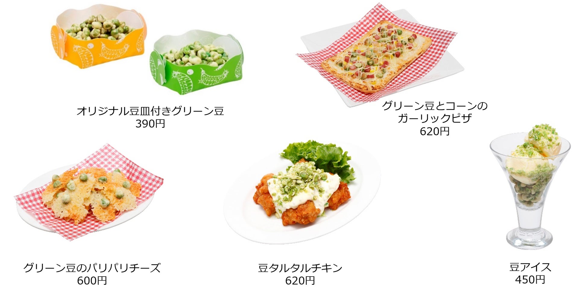 ②グリーン豆を使ったコラボメニュー5種を実施店舗限定で販売 *価格は全て税込