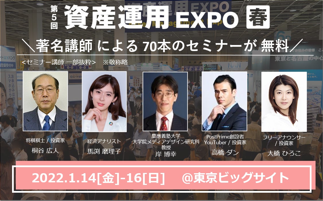 「お金の貯め方・増やし方」が学べる70本のセミナーがすべて無料で聴講可能。【桐谷広人氏・岸博幸氏】などメディアでも注目されている講師が多数登壇予定!【株式投資・不動産投資・FX・相続・事業継承…】など多様なテーマで講演します。