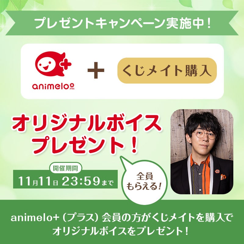 さらに、ニコニコチャンネル「animelo+」の会員の方が、本くじメイトを購入すると、もれなくオリジナルボイスがもらえるキャンペーンを11月11日(土)まで実施。