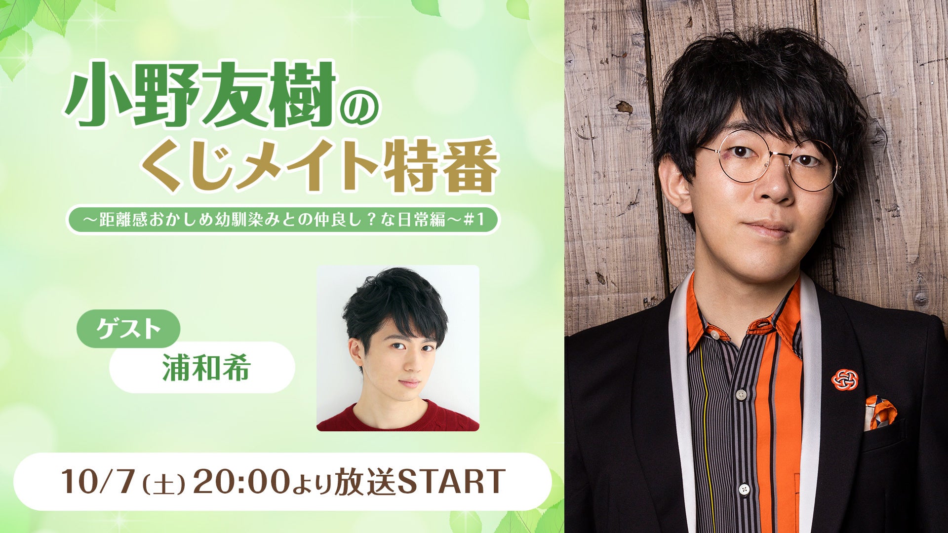 10月7日(土)放送の「小野友樹のくじメイト特番~距離感おかしめ幼馴染みとの仲良し?な日常編~#1」は、アニメイトのオンラインくじサービス「くじメイト」において、小野友樹さんのくじメイトが販売となったことを記念して行われる特別番組です。