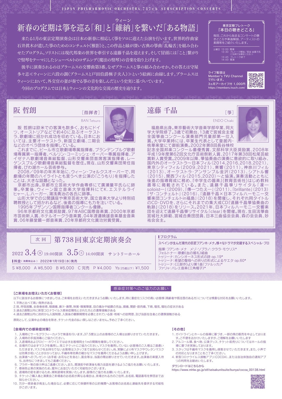 【第2弾】第737回東京定期演奏会(2022年1月14日(金)/15日(土)) サントリーホール
