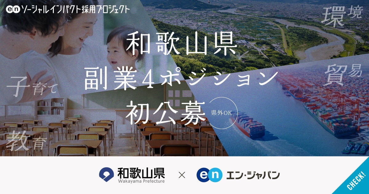 和歌山県、エン・ジャパンで新設副業4ポジションを全国から公募。