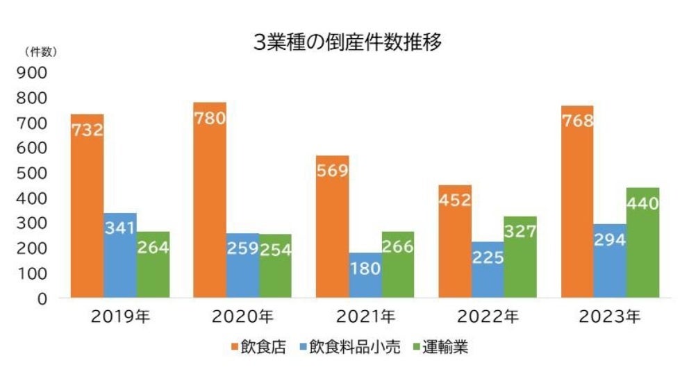 「飲食店」「飲食料品小売」「運輸業」は倒産件数が増加