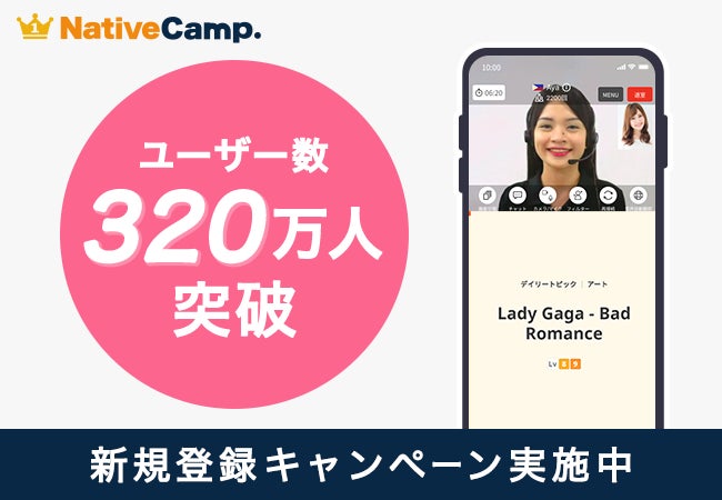 ネイティブスピーカーと回数無制限のオンライン英会話サービス「ネイティブキャンプ英会話」を展開する株式会社ネイティブキャンプ(東京都渋谷区 代表取締役:谷川国洋)は2025年4月27日(日)、国内オンライン英会話業界で最多となるユーザー数320万人を突破いたしました。