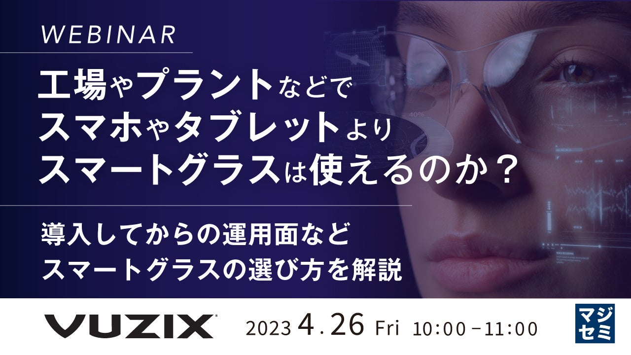 マジセミ株式会社は「スマートグラスの選び方を解説(工場やプラントでの利用)」というテーマのウェビナーを開催します。