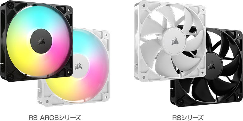 マザーボードのイルミネーションと同期可能なLEDを備えた「RS ARGB」シリーズと、LED非搭載の「RS」シリーズをラインナップ。それぞれ2色のカラーバリエーション、単品モデルとセットモデルをご用意しており、環境に合わせてお選びいただけます。