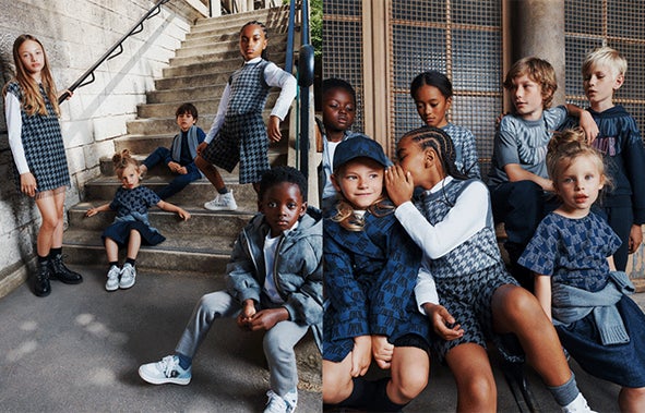 夏休みの終わりを前に、ベビー ディオールはコーデリア・ドゥ・カステラーヌのデザインによる「バッグ トゥ スクール」カプセルコレクションを発表。子供たちの制服にインスパイアされたこのコレクションでは、ブルーとグレーを基調とした、一日のあらゆるシーンにマッチするカジュアルなアイテムが揃い、秋を彩ります。男の子向けのアイテムには、ローズウッドやミルクホワイト、ストーミーグレーなどの柔らかな色合いのウールセーターやTシャツに新たな装いの”DIOR”シグネチャーがアクセントを添えます。そのほか、ジャケットやフーディ、ジョグウェア、ゆったりとしたジーンズが、コンテンポラリーなスポーツウェアのワードローブを完成させます。ベージュやネイビーブルー、ライトグレーの濃淡の色合いで展開される女の子向けのアイテムには、アイコニックな千鳥格子柄があしらわれ、ノースリーブニットやプリーツスカート、ドレスのほか、コートやケープ、ポンチョなど、動きやすいアイテムがラインナップ。ベレー帽やキャップ、ボブハット、“DIOR”ロゴがあしらわれたスカーフなどのアクセサリーが、大胆かつ洗練されたルックを仕上げます。秋の装いにファイナルタッチを添える新作は「ディオール オブリーク」柄のシューズや、レザーグッズ、そしてバックパック。新学期をはじめるに最適なセレクションが充実しています。