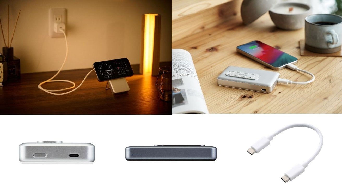 ■USB Power Delivery 20W出力のUSB Type-C(USB-C)ポートを2ポート搭載。ケーブルを使って通常のモバイルバッテリーとしても使用可能です。