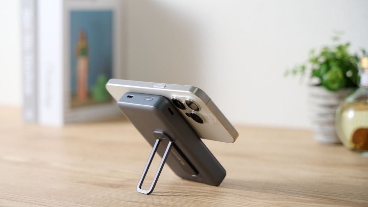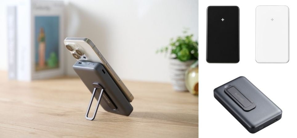 iPhoneのマグネットでピタッと簡単充電!折りたたみスタンド付きのMagSafe対応ワイヤレス充電モバイルバッテリーを新発売