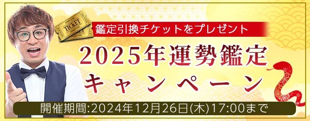 「アポロン山崎の占い」では『2025年運勢鑑定キャンペーン』を開催中です。キャンペーン期間中、対象の鑑定を占っていただいた方には、期間限定の鑑定と交換できる鑑定引換チケットをプレゼントいたします。