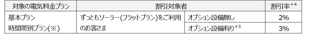 *4:基本プランは基本料金および電力量料金が2%もしくは3%割引となり、時間帯別プランは基本料金および電力量料金(燃料費調整額を除く)が2%もしくは3%割引となります。