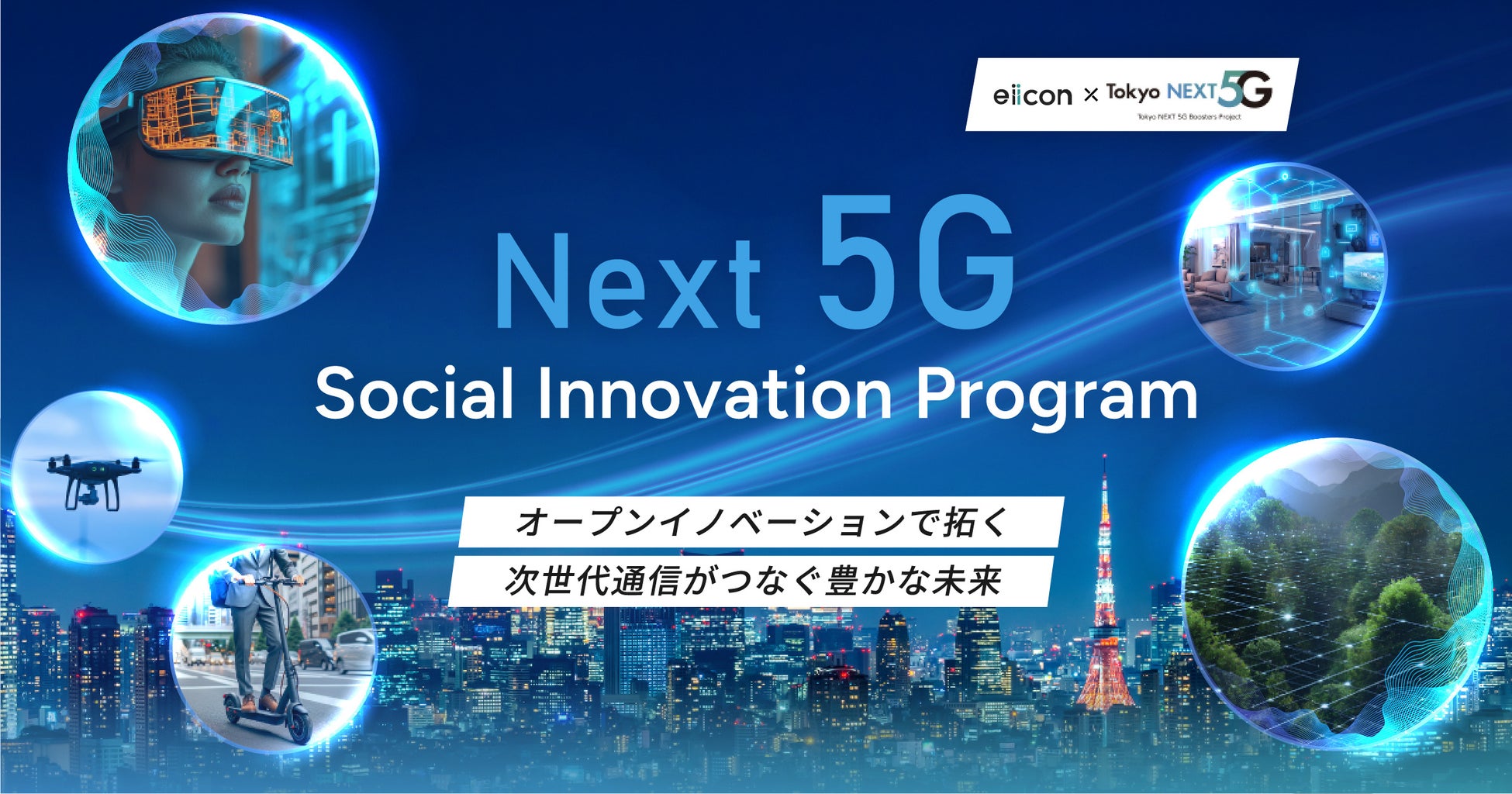 Next 5G Social Innovation Programは、株式会社eiiconが企画・運営するスタートアップ共創プログラムです。次世代通信技術(5G/Beyond 5G)を活用し、都民の暮らし(QOL)向上に資する技術・サービスを有するスタートアップを3カ年で事業開発・社会実装まで伴走支援することを目的としています。