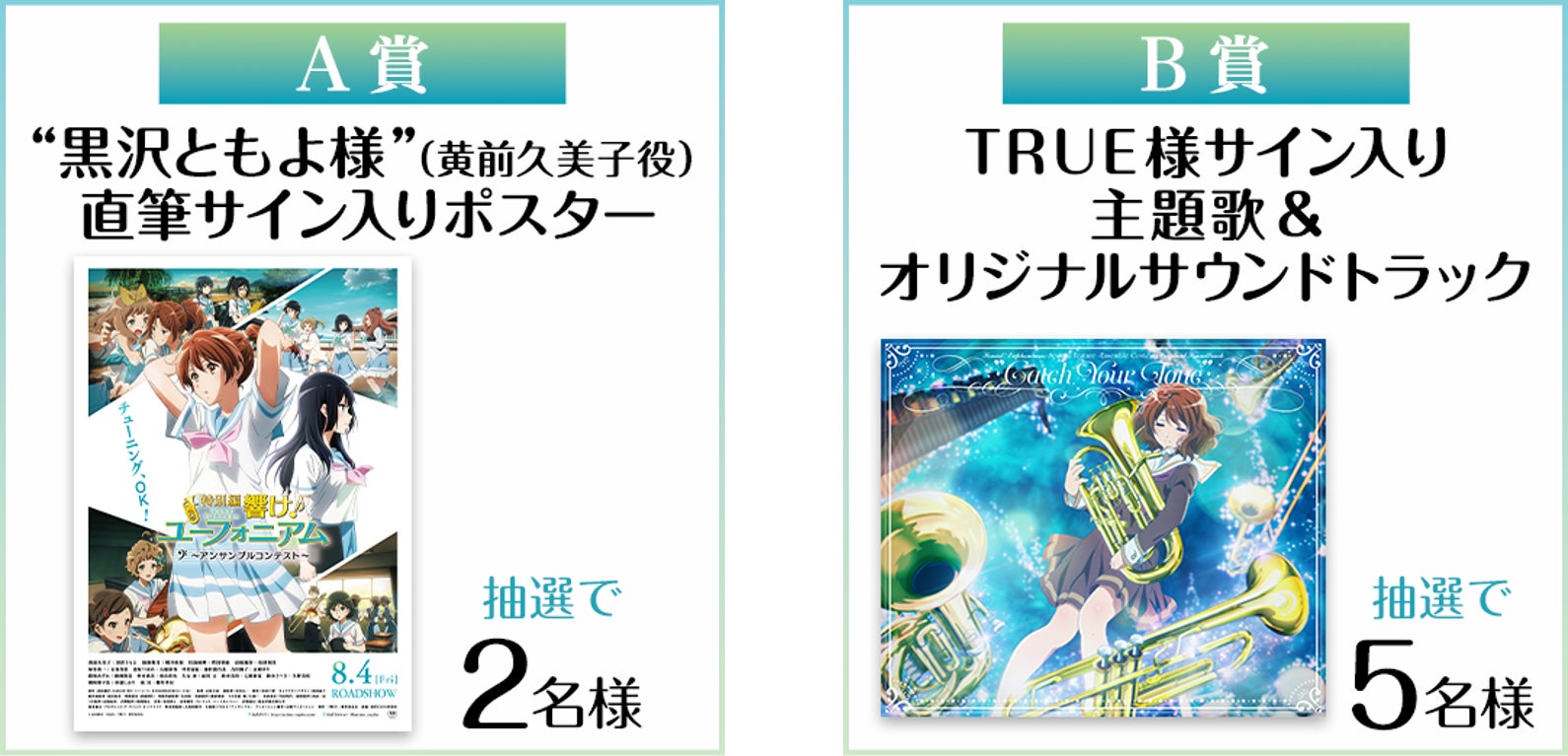 抽選で、黒沢ともよ(黄前久美子役)直筆サイン入りポスターなどの豪華賞品を計7名様にプレゼント。
