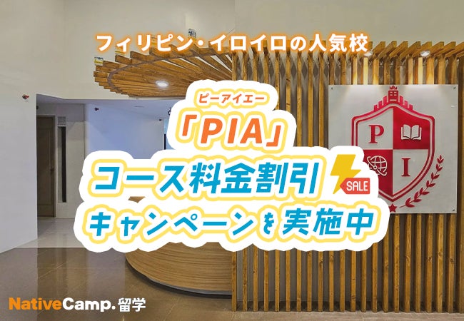 ネイティブスピーカーと回数無制限のオンライン英会話サービス「ネイティブキャンプ英会話」を展開する株式会社ネイティブキャンプ(東京都渋谷区 代表取締役: 谷川国洋)は、海外留学エージェントサービス「ネイティブキャンプ留学」において、フィリピン・イロイロの人気校「PIA」にて、コース料金割引キャンペーンを実施いたします。