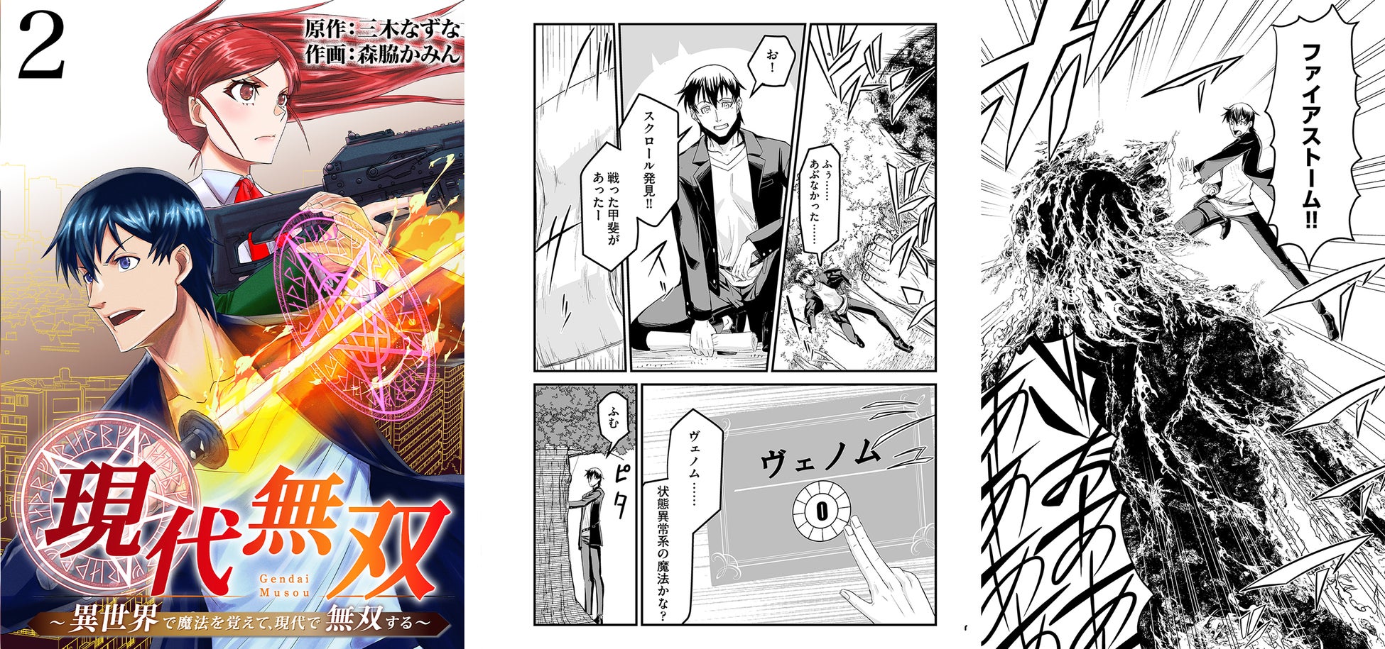 今回は、異世界バトルアクションの人気作『現代無双~異世界で魔法を覚えて、現代で無双する~』(原作:三木なずな 作画:森脇かみん)を配信。最新第2巻では異世界で魔法を習得し、モンスターハンター試験に合格した高校生・風見誠が、SSSランクのモンスターハンターになるべく修練を積み、レベルアップしていくさまを描きます。単行本には単話連載10話分に加え、描き下ろしの特典漫画と著者あとがきを収録しております。