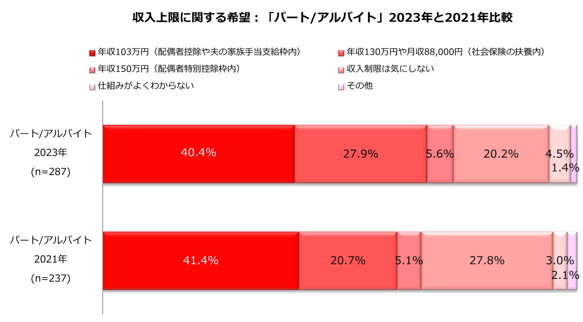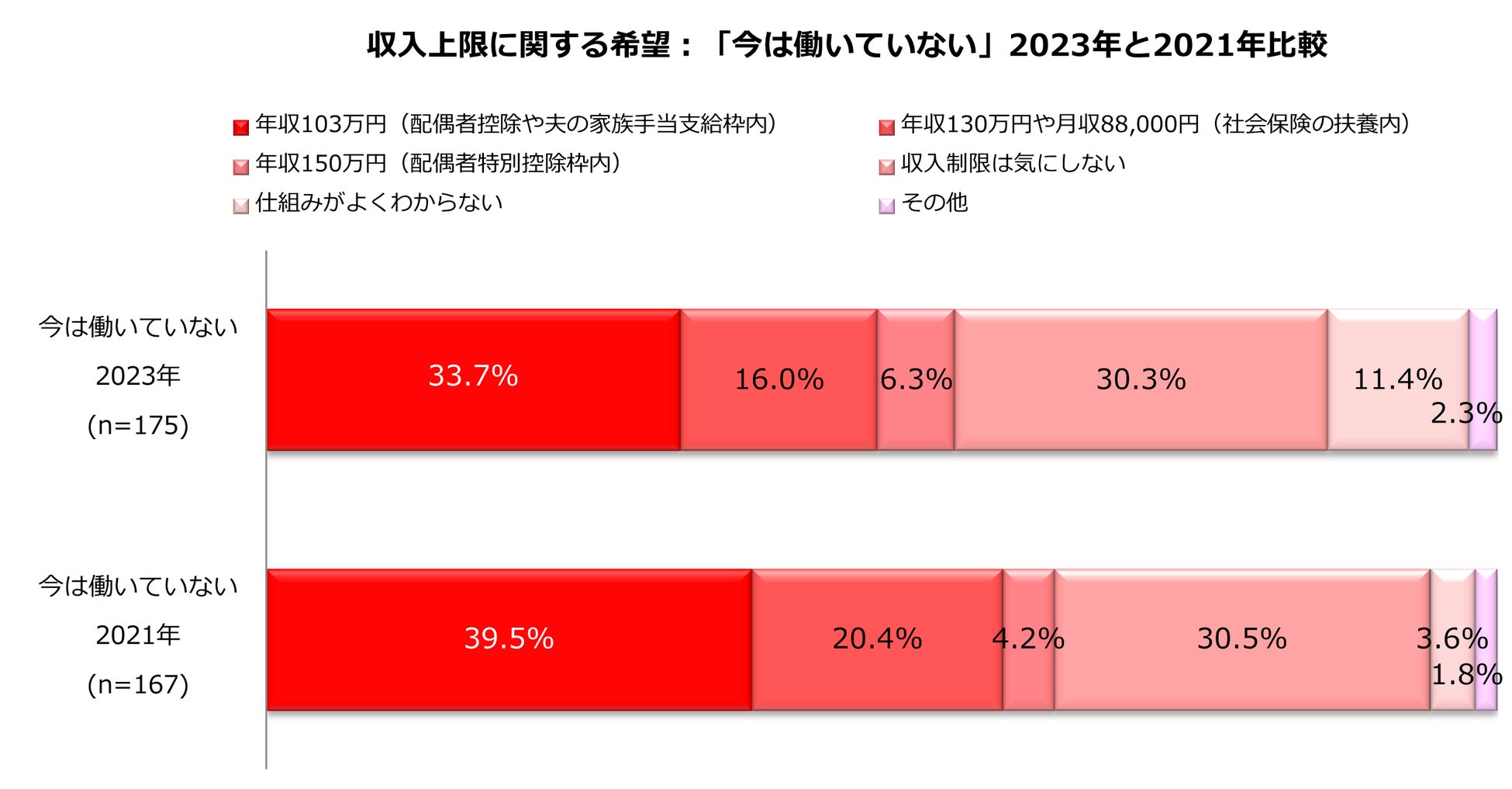 3.収入上限に関する希望:働き方別 2023年と2021年比較