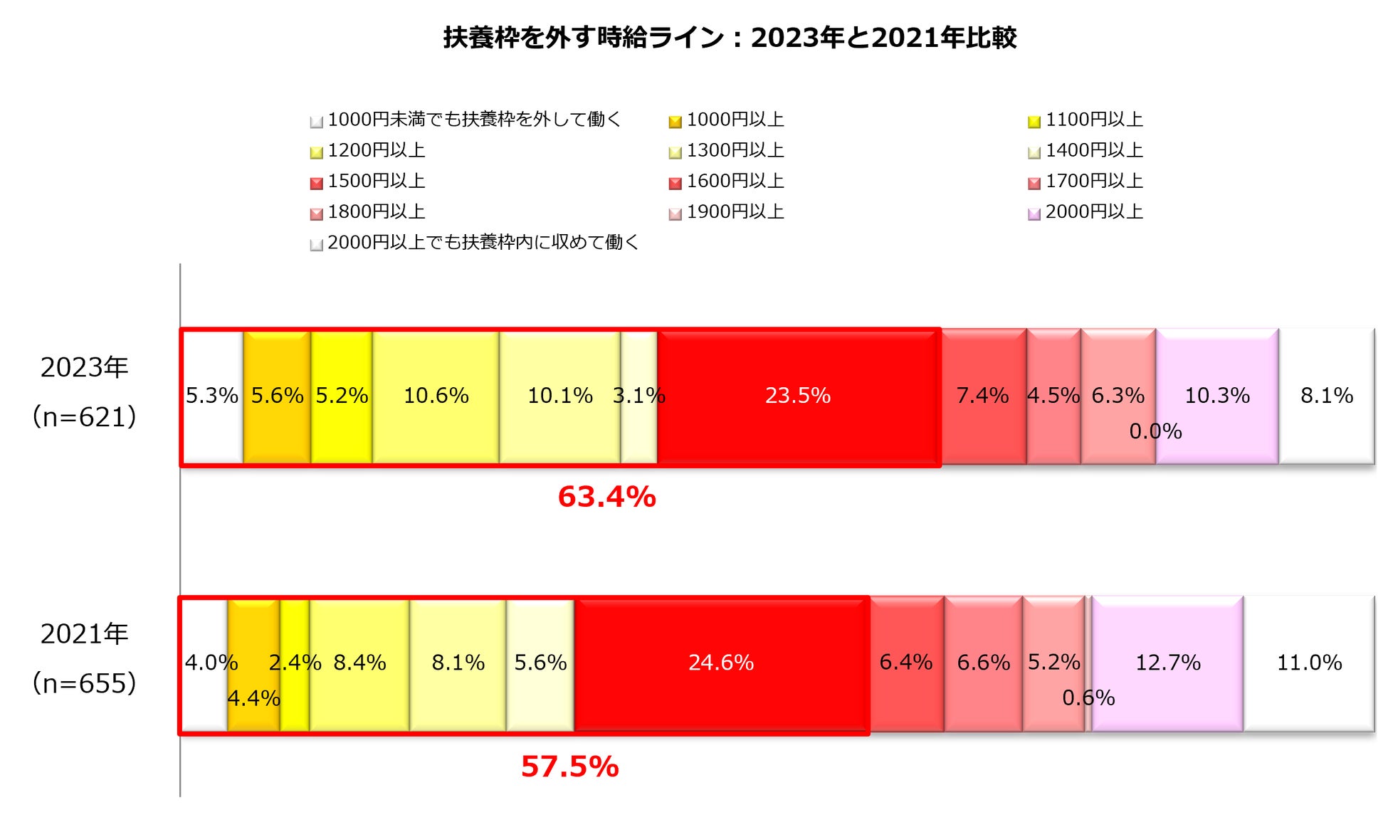 5.扶養枠を外す時給ライン:2023年と2021年比較