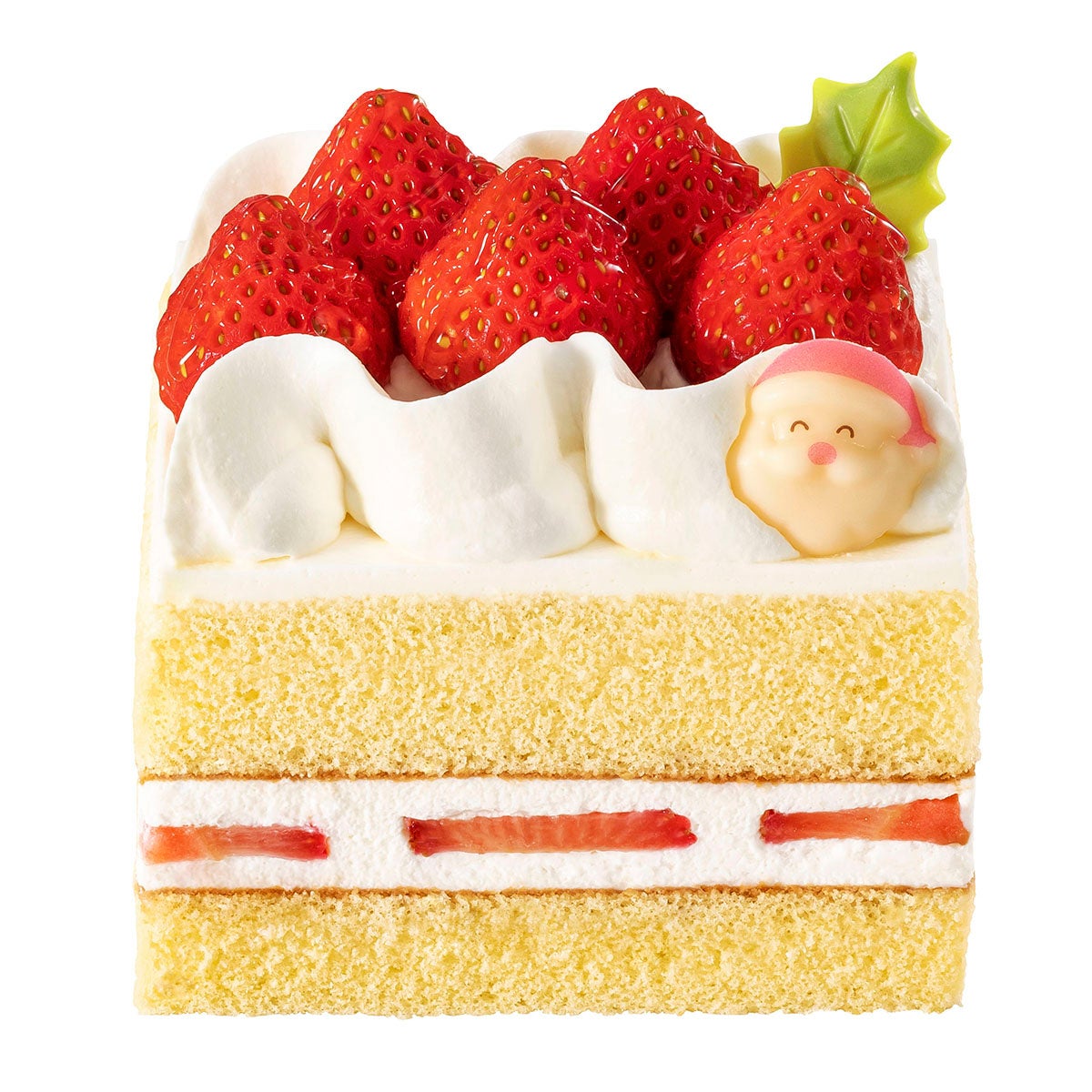 真っ赤な苺が輝く、華やかな宝石箱のようなクリスマスショートケーキです。中にも 瑞々しい苺のおいしさがぎっしり。ミルクのコクが広がるクリームと、しっとり柔らかなスポンジを一緒に召しあがれ!