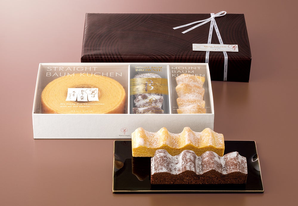 ねんりん家の誇るバームクーヘンの数々を満喫いただける、冬だけのギフトです。バター風味たっぷりの代表作「マウントバーム しっかり芽」。濃厚にカカオが香る冬限定品「マウントバーム ブラウニー」。たまごたっぷりでふっくらジューシーな「ストレートバーム やわらか芽」。