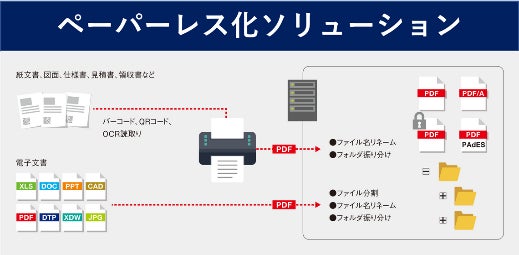 QRコード/バーコード/OCR認識によるファイル名の変更やフォルダ振り分け、全文OCR、電子署名・タイムスタンプ付与など業務自動化・電子化を行う際に活用できる機能を多数搭載しています。またOfficeファイルの一括PDF変換にも対応しています。