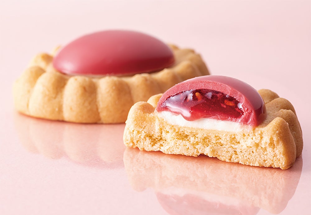 ブランド代表作。果実やナッツのコンフィチュールをとろっととじこめた 贅沢なコクの宝石ショコラを、カリッと香ばしいクッキーに重ねました。