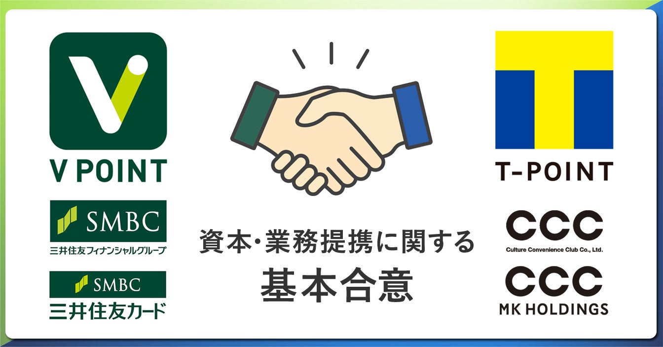 株式会社三井住友フィナンシャルグループ(執行役社長グループCEO:太田 純、以下「SMFG」、同社グループを総称して「SMBCグループ」)、及び三井住友カード株式会社(代表取締役社長:大西 幸彦、以下「三井住友カード」)とカルチュア・コンビニエンス・クラブ株式会社(代表取締役社長兼CEO:増田 宗昭、以下「CCC」、同社グループを総称して「CCCグループ」)及びCCCMKホールディングス株式会社(代表取締役社長:髙橋 誉則、以下「CCCMKHD」)は、SMBCグループとCCCグループとの間の資本・業務提携に関し、基本合意書を締結いたしました。