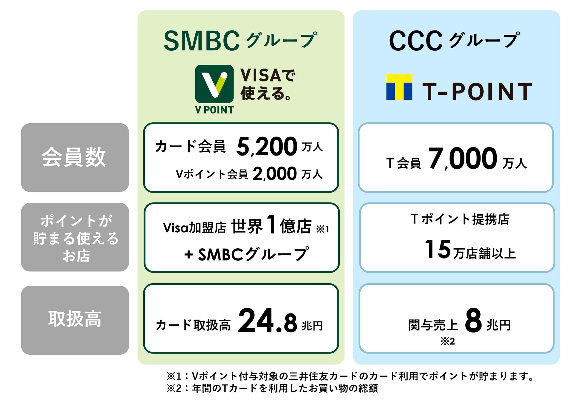 このような環境変化の中、キャッシュレス決済のリーディングカンパニーである三井住友カードを有するSMBCグループと、国内で初めて共通ポイントのデファクトスタンダードを構築し、7,000万人がご利用いただくTポイントの会員基盤を有するCCCグループは、最も支持されるポイントブランドと日本最大級の決済・ポイント経済圏を構築し、両社グループの会員・加盟店等のお客さまに、よりお得で便利な顧客価値が高いサービスを提供することを目的として、資本・業務提携に関する基本合意書を締結いたしました。