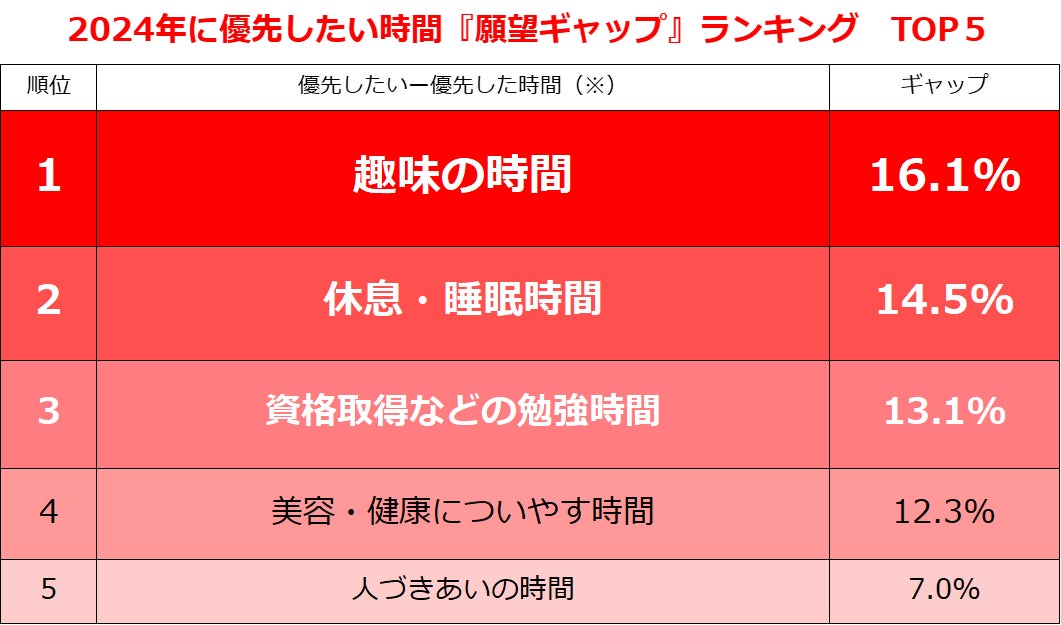 6.2024年に優先したい時間『願望ギャップ ※』/ランキングTOP5