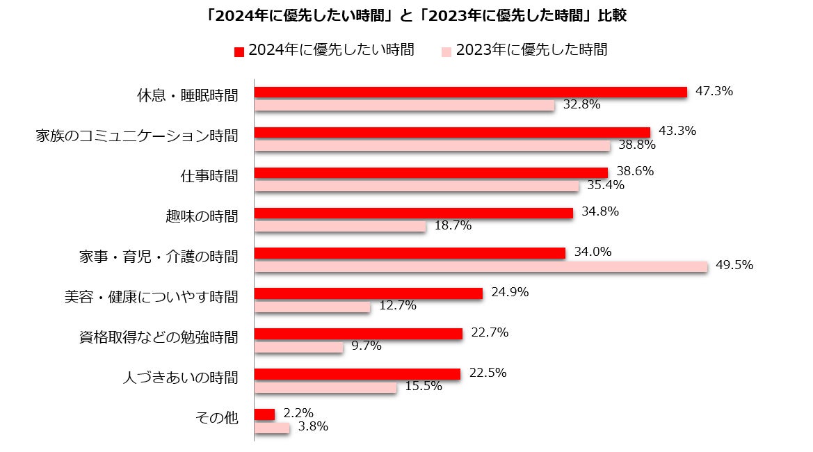 5.「2024年に優先したい時間」と「2023年に優先した時間」比較