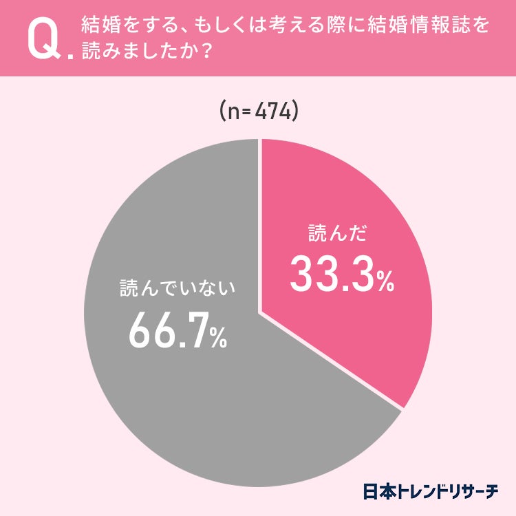 33.3%と、およそ3割以上の方が「結婚をする・もしくは考える際に、結婚情報誌を読んだ」と回答しています。