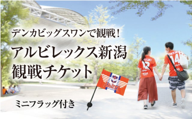 アルビレックス新潟の任意の試合(リーグ戦ホームゲーム)での自由席観戦チケット1枚とミニフラッグ1枚とセットに。デンカビッグスワンスタジムで応援しましょう!