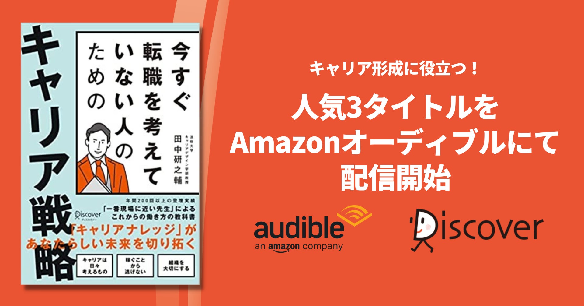 株式会社ディスカヴァー・トゥエンティワン(本社:東京都千代田区、取締役社長:谷口奈緒美)と世界最大級のオーディオブック及び音声コンテンツ制作・配信サービスであるAmazonオーディブル(以下、オーディブル)は、2022年7月15日に『今すぐ転職を考えていない人のための キャリア戦略』(田中研之輔・著)他2点のオーディオブックを、オーディブルにて発売しました。
