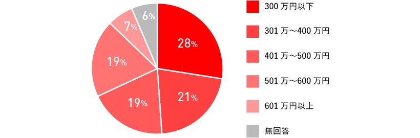 現年収:300万円以下 13名、301~400万円 10名、401~500万円 9名、501~600万円 9名、601万円以上 3名、無回答 3名