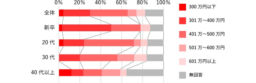 - 2022年夏に実施した同様のアンケートの結果から100万円ほど希望額が増加した。夏時と比較して、就業経験のある参加者の割合が増加したことが要因ではないかと考えられる。