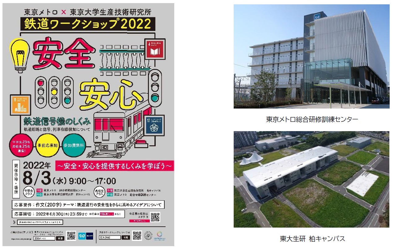 「鉄道ワークショップ2022」は、東京メトロと東大生研次世代育成オフィス※が連携し、お互いのリソースを活用して次世代を担う人材を育成することを目的とした講座で、中学生、高校生を対象に夏休み期間に開催します。