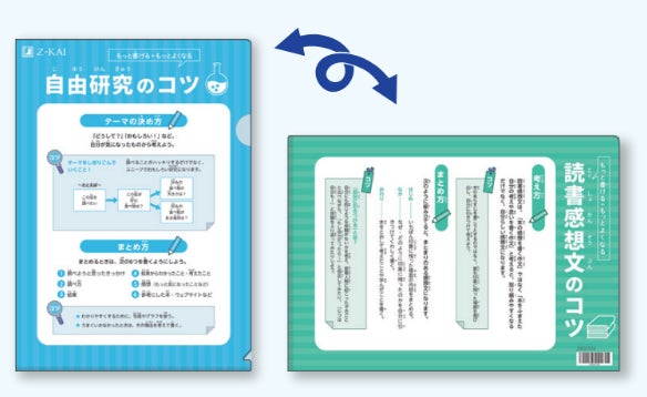 ・夏に取り組む機会の多い、自由研究・読書感想文のコツをまとめたA4クリアファイル。「何を書けばいいのかわからない…」「どうしたら自分らしい作品になる?」といったお悩みに役立つ内容です。