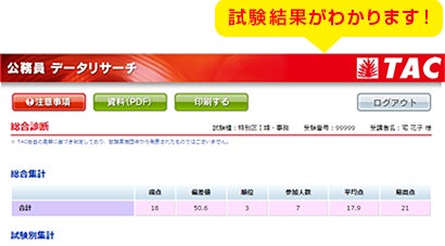 また、択一試験の順位判定&問題ごとの正答率のフィードバックを行う無料Web採点サービス「本試験データリサーチ」を実施いたします。