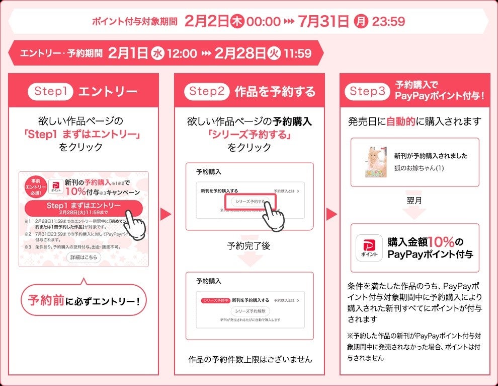 └新刊の発売日に予約購入により購入が行われると、購入翌月に購入金額の10%のPayPayポイントが付与されます