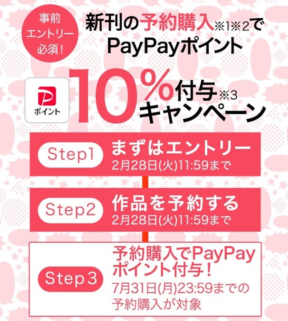 ※2. 2023年7月31日(月)23:59までの予約購入により自動購入された書誌に対してPayPayポイントが付与されます。