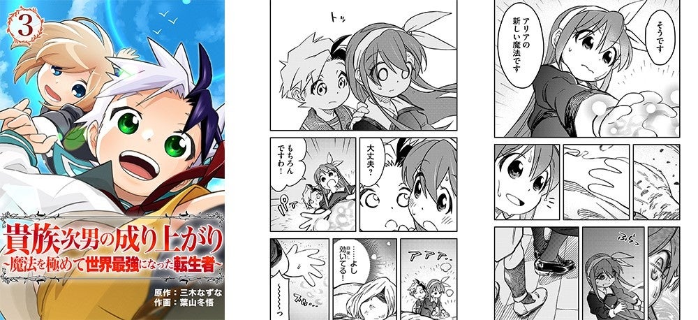 今回、配信となるのは、ebookjapan限定の4ページ特典マンガが付いた『貴族次男の成り上がり~魔法を極めて世界最強になった転生者~(合本版)3巻』(原作:三木なずな 作画:葉山冬悟)と、勇者ママの時短冒険譚『我が子を勇者にしたくない母は時短で魔王を倒したい!(合本版)1巻』(原案・コンテ:綾木はじめ 作画:池田圭紀)の2タイトル。両単行本とも単話連載9~10話分に加え、描き下ろしのマンガなどの特典を収録しております。