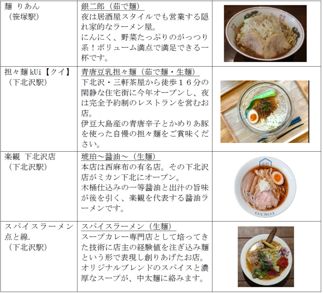 本サービスで購入できる店舗は、府中に店舗を構える「麺創研 紅」や、「楽観 下北沢店」など沿線に所在する7店舗のラーメン店です。オーソドックスな醬油ラーメンや味噌ラーメン、本格派の豚骨ラーメンのほか、一風変わったスパイスの効いたラーメンなど様々な店舗の味が楽しめます。また、今回の商品拡充を記念し、「名店の味を最寄り駅に ラーメン派vsカレー派あなたはどっち派?トレくるで注文して応援しよう」キャンペーンを期間限定で開催します。