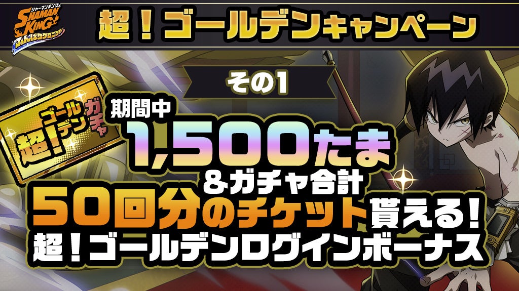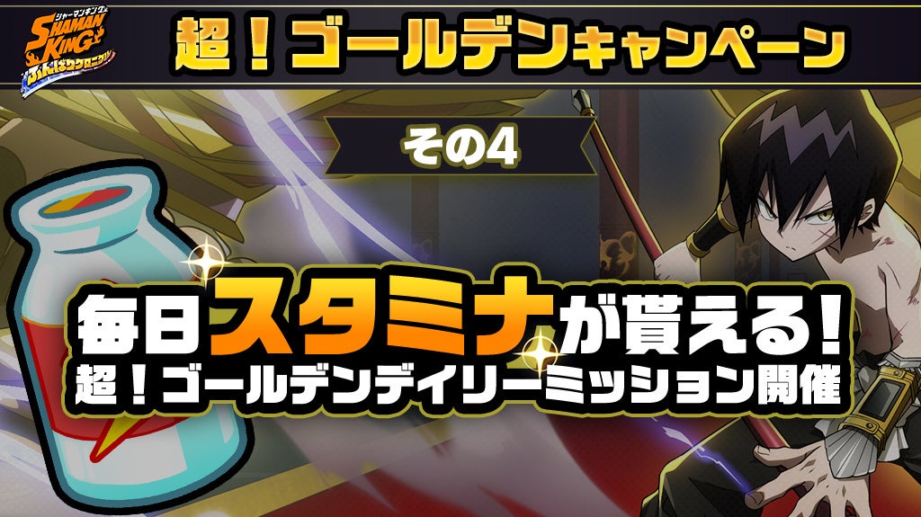 Studio Z株式会社(本社:東京都港区、代表取締役CEO:池幡賢)は、好評放送中のTVアニメ『SHAMAN KING(シャーマンキング)』を題材とした初のスマートフォン向けアプリゲーム『SHAMAN KING ふんばりクロニクル(通称:ふんクロ)』にて、対人型の新コンテンツ「カリムの修練場」を追加いたします。全国のユーザーたちと戦い、特定キャラの巫珠や覚醒珠を入手することが出来るようになります。また、ランク上限の解放や、最大で1,500たまと50連分のガチャチケットなどが貰えるキャンペーンも開催いたします。是非、ログインして無料でGETしましょう。