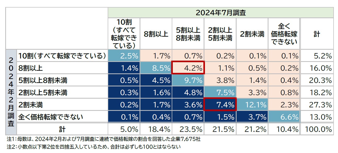 価格転嫁に関する実態調査-価格転嫁の状況分析(2024年2月・7月比較)-