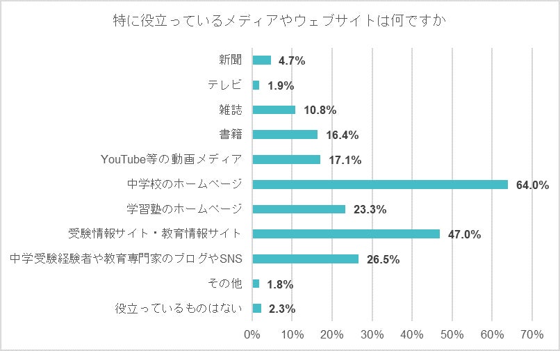 中学受験を予定している小学生保護者が役立てている手段は「中学校のホームページ」「塾からの情報」