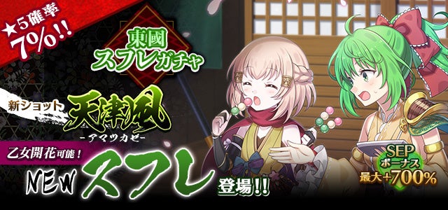 「東國スフレガチャ」では、新ショット「天津風」を持つ「【東國】スフレ&ヤツカ」が登場します。