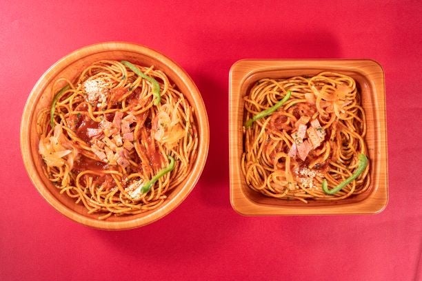 【内容】ケチャップなどで炒めたパスタにベーコン、玉ねぎ、ピーマンなどをトッピングしたナポリタンです。ケチャップの旨みや酸味が効いた仕立てで、マーガリン・ピーマンピューレ・ウスターソースなどで旨みとスパイス感も感じられます。内容量をだいたい40%増量しました。