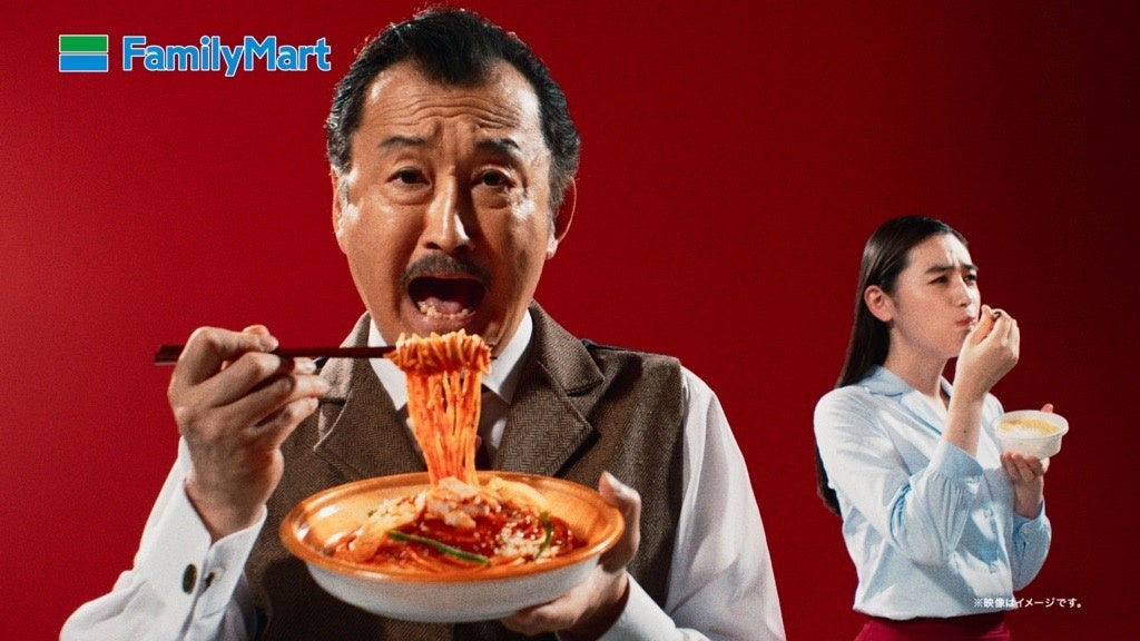 吉田鋼太郎さん、八木莉可子さん画面からハミ出すインパクト特大のドアップ姿で増量具合をアピール ファミリーマート「だいたい40%増量作戦」新TVCM放映開始