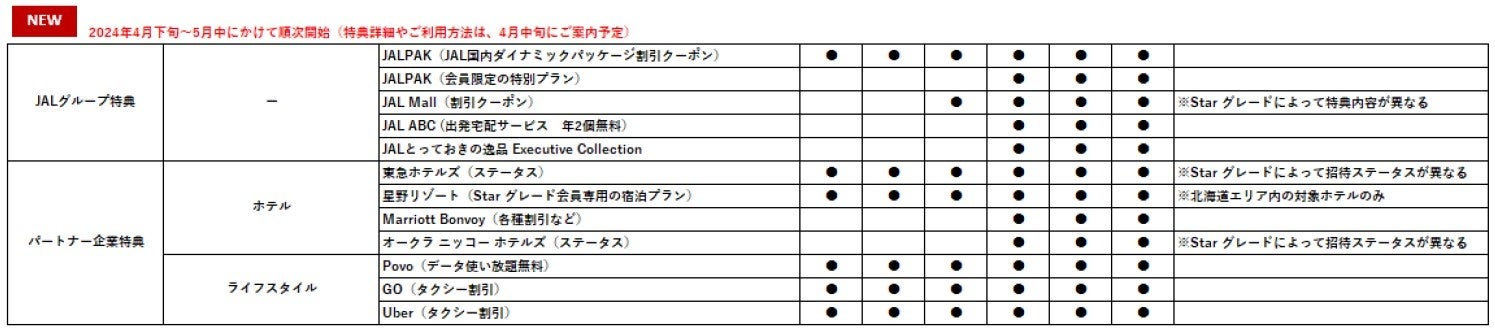 2024年1月からこれまでの航空機利用に加えて、日常生活のさまざまなサービスのご利用でたまる生涯実績ポイントにより新たなステイタスや特典をご提供する「JAL Life Status プログラム」(*)を開始しましたが、このたびLife Status ポイントの積算対象サービスの拡大と獲得したポイントに応じて付与されるStar グレード(グレードごとの特典利用)を2024年4月より順次導入します。