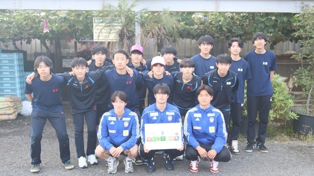 5月29日(水)、今シーズンよりプロサッカー選手としてのキャリアを歩み始めた森璃太選手、奥村仁選手、石山青空選手が、新潟市南区にある白根グレープガーデンを訪問し、新潟県立白根高校の生徒と一緒に、ル レクチエの栽培体験を行いました。