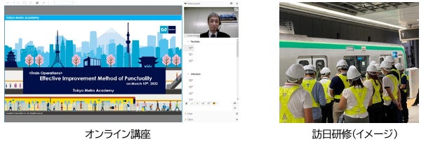 昨年度、「Tokyo Metro Academy 2022-2023」で8オンライン講座を開催したところ、14か国170名の方にご参加いただき、当社の取り組みに対して高い関心をお持ちいただきました。「Tokyo Metro Academy 2023-2024」では、オンライン講座を8講座から14講座に増加し、また、今回から新たに、東京メトロの施設での対面講義・現場視察を行う訪日研修を開催いたします。